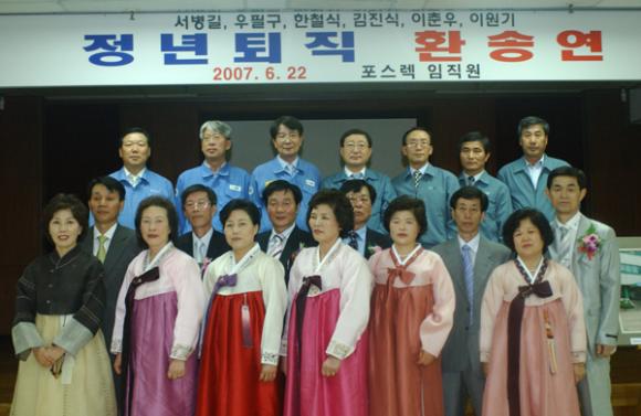 하면서 퇴직자 및 가족들에게 축가를 불렀다. 퇴직자들에게 이상영 사장의 공로패 수여, 담당 임원의 기념품 전달, 가족 및 직원들의 꽃다발 증정을 끝으로 상반기 퇴직행사를 종료하였다.