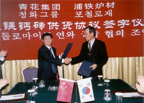 중국 청화미광과 OEM 공급계약 체결 포스렉(사장 황원철)이 포스코 STS공장 정련로용 내화물의 국산화에 성공했다. 포스렉은 2002년 10월부터 포스코(기계설비부 노재과)와 공동으로 스테인레스공장의 AOD로의 내화물 공급사인 LWB(Lhoist Wulfrath Baker)사가 독점 공급하던 돌로마이트(Dolomite)벽돌의 수명연장과 안정적인 공급을 목표로 중국의 청화미광에 2년여에 걸친 기술지원 끝에 스테인레스공장 정련로용 내화물의 국산화에 성공하였으며, 11월부터 본격적으로 공급하고 있다. 포스코 스텐인레스공장의 AOD(Argon Oxygion Decarburization)로는 불활성가스인 아르곤과 산소를 혼합시켜 용강 속에 불어넣음으로써 탈탄효과를 향상시켜 표면이 미려하고 내식성이 우수한 스테인레스강을 생산하는 정련로를 말한다. 포스렉은 11월 5일 중국 청화미광에서 스테인레스용 돌로마이트 내화물의 공급계약을 체결하였으며, 연간 110억원의 매출증대는 물론 포스코에 내화물을 안정적으로 공급할 수 있는 기반을 다질 수 있게 되었다. 포스렉은 스테인레스공장 정련로용 돌로마이트벽돌의 품질 및 가격경쟁력 확보, 안정적인 공급을 위하여 실시된 LWB사 제품과의 비교 테스트에서 가격, 수명 등에서 우위를 차지하였다. 이번 포스렉의 스테인레스공장 정련로용 내화물의 국산화 및 공급계약 체결로 포스코는 내화물 공급 메이커 이원화로 경쟁체제를 구축할 수 있게 되었으며, 자재 국산화로 재고관리의 효율화 등을 기할 수 있게 되었다. 또한, 포스렉은 OEM사인 중국의 청화미광과 공동으로 제3국으로의 수출을 모색하는 등 지속적으로 협력해 나가기로 했다.