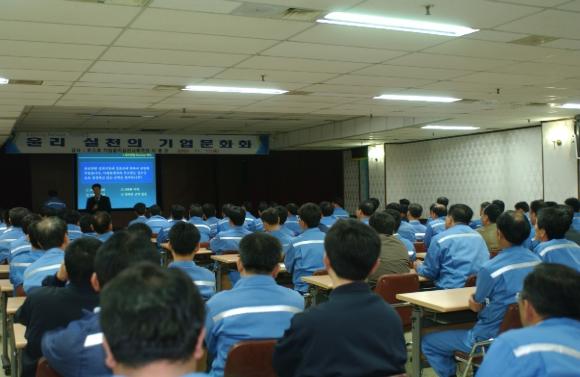 회사는 11월 16일 광양로재정비부문 강당과 11월 17일 본사 강당에서 기업윤리 실천을 위한 초청 특강을 실시하였습니다. 회사는 지난 5월 12일에 이어 이번에도 기업윤리 실천활동에 대한 이해와 임직원 실천의식 제고를 위해서 포스코 기업윤리실천사무국의 이동만 국장을 초청하여 "윤리 실천의 기업문화화"라는 주제의 특강을 실시하였습니다. 이번 특강은 회사 임직원을 비롯한 소사장회사 임직원들도 참석하여 뜨거운 열기를 반영하였으며, 강사로 나온 이동만 국장은 윤리퀴즈, 타사 비윤리 사례, 윤리딜레마 탈출훈련 등의 강의를 통해 기업윤리가 정착될 수 있도록 지속적인 관심과 노력을 기울여야 할 것이라고 강조하였습니다. 우리 회사 기업윤리 실천 주관부서인 감사팀에서는 이러한 기업윤리 실천을 위해 다양한 프로그램을 개발, 전 임직원 및 거래처를 대상으로 교육을 실시하고 있으며, 기업윤리 실천리더를 중심으로 한 사내 전 부문에 걸친 점검과 계몽을 지속적으로 실시하고 있습니다.
